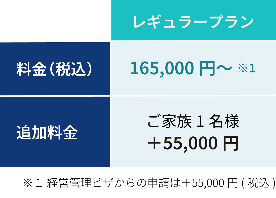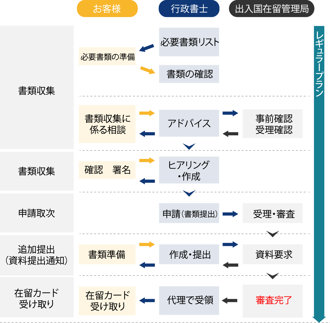 ※レギュラープランをお申込みの場合、万が一申請が不許可になってしまった場合には担当行政書士が無料で出入国在留管理局の担当官に不許可理由を確認し、ご依頼人様に報告します。