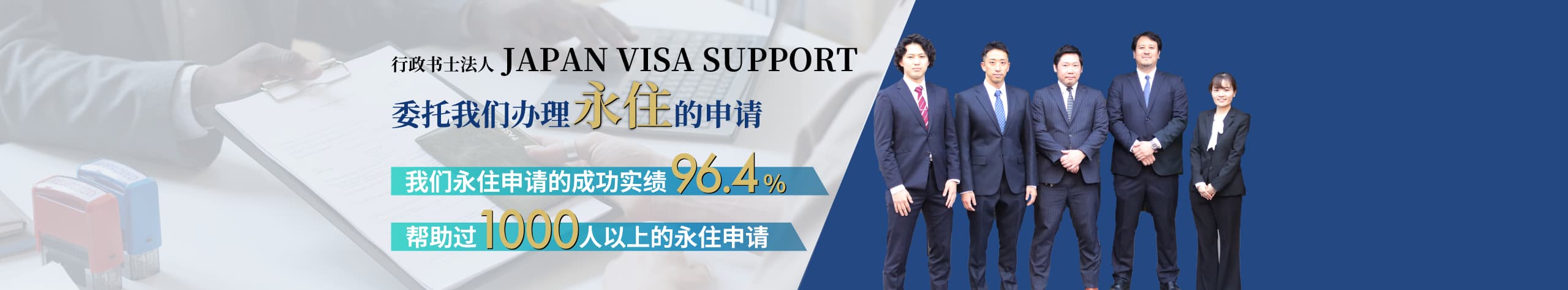 JAPAN VISA SUPPORT是具有其他的行政书士事务所所无法达到的法律专业性,和通过10人以上的专业团队来迅速和认真负责的对待每一位客户,所以才能实现帮助很多外国人取得了永住权。