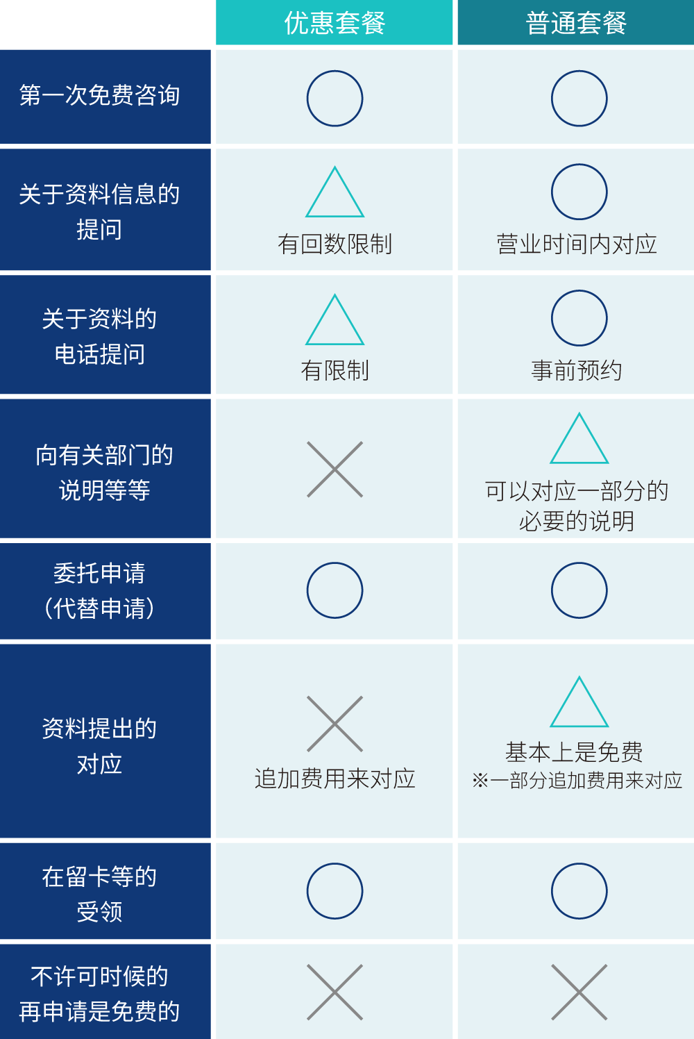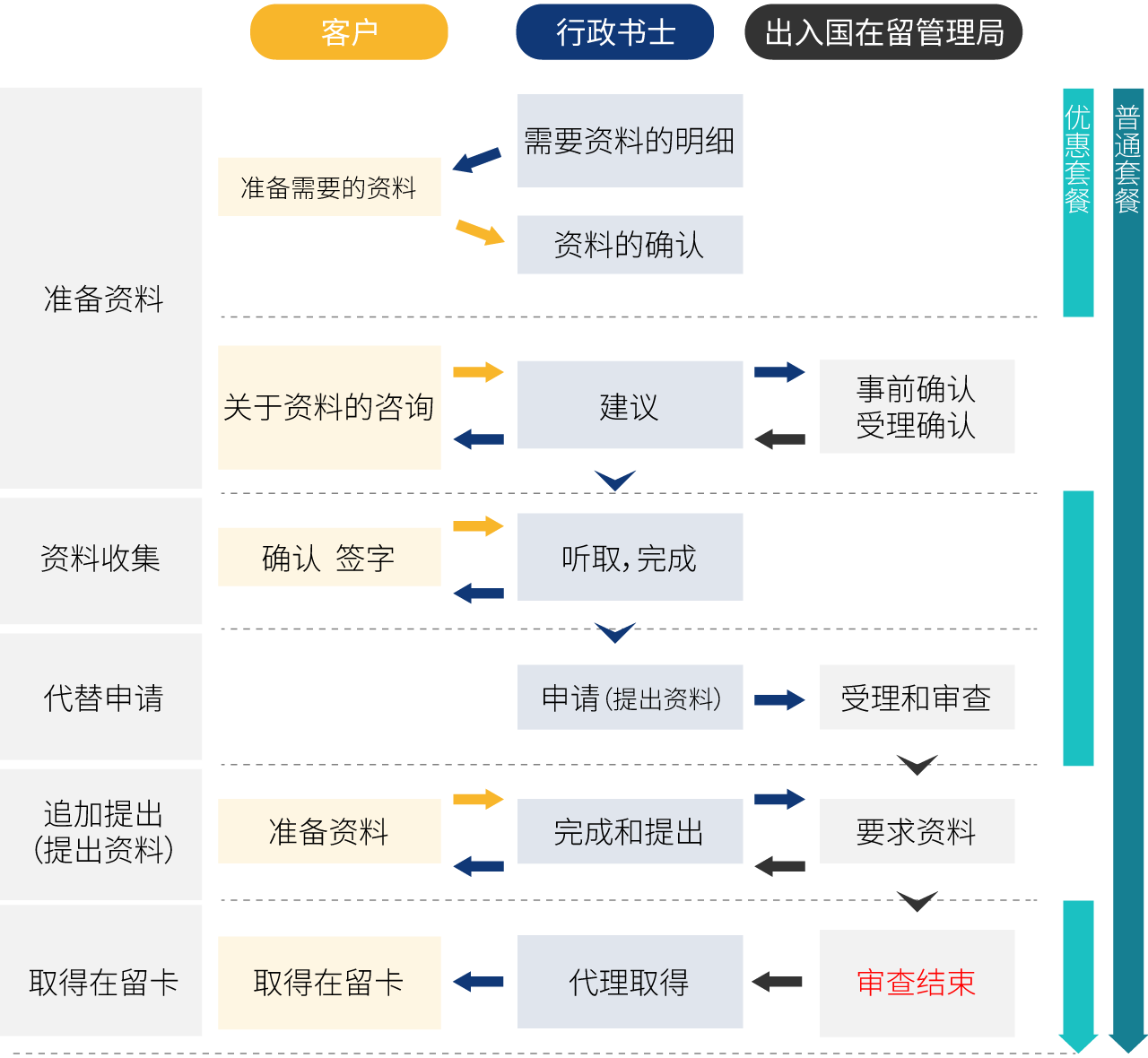 ※申请普通套餐的话,万一申请不许可的话,担当的行政书士会免费的去出入国管理局去确认不许可的原因,然后向客户汇报。