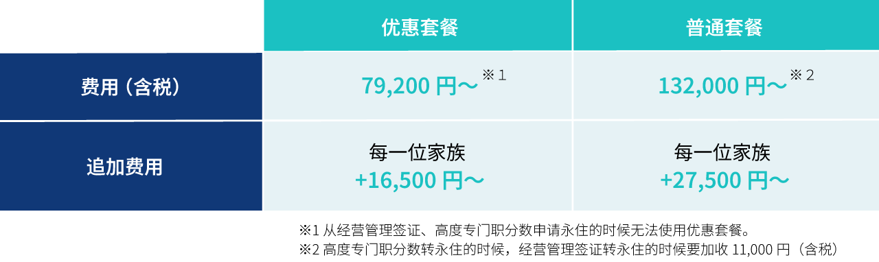 JAPAN VISA SUPPORT 提供三种定价计划以满足您的需求。如果您没有任何严重问题,您可以以低价计划请求签证申请支持,同时保持高水平的法律专业知识。通过我们的低成本计划,您可以以 36,000 日元起申请签证。