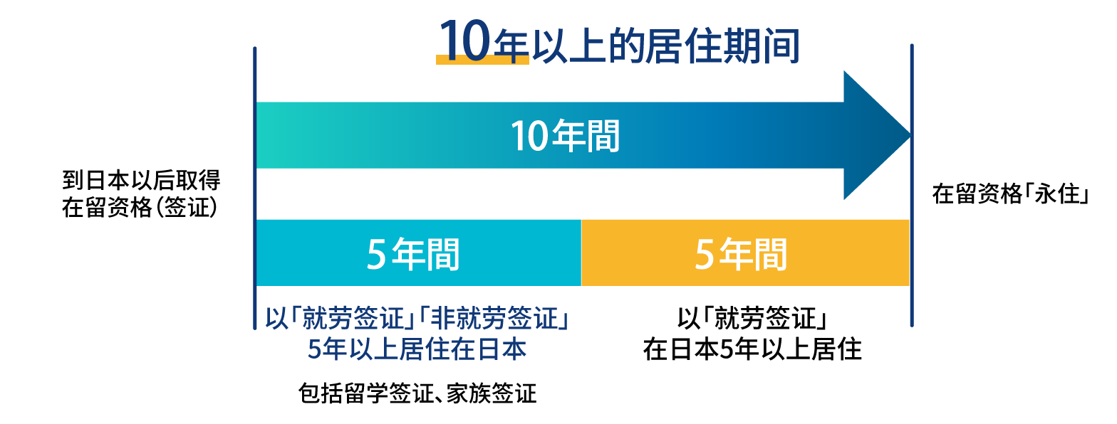 10年以上的居住期限 ※10年间的居住期间内,5年以上就劳签证